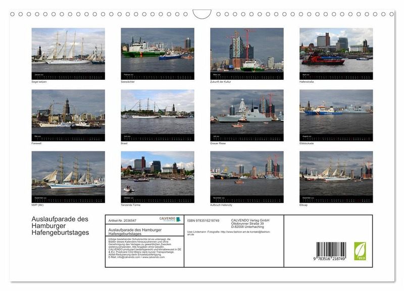 QUALITÄT - Hochwertiger Fotokalender mit 12 wunderschönen Motiven auf lichtbeständigem Bilderdruckpapier, robuste Spiralbindung mit Aufhängebügel.NACHHALTIG - deutliche Abfallreduzierung durch bedarfsgerechte Einzelstückfertigung, umweltfreundliches FSC-zertifiziertes Papier, Produktion in Deutschland, klimabewusste Logistik.PERFEKTES GESCHENK - Kalender für Freunde und Familie, für Kinder und Erwachsene, jung und alt, zu Weihnachten, Geburtstag oder zwischendurch.VIELFALT - Bildkalender in verschiedenen Formaten, z.B. DIN A5, DIN A4, DIN A3 sowie DIN A2. Ob Naturmotiv, Gemälde oder Fotos, ideal für ein persönliches Wohlfühlambiente.Bilder der Auslaufparade im Hamburger Hafen von Autor(in): Uwe Lindemann
