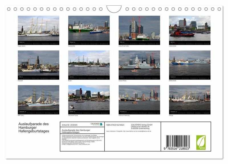 QUALITÄT - Hochwertiger Fotokalender mit 12 wunderschönen Motiven auf lichtbeständigem Bilderdruckpapier, robuste Spiralbindung mit Aufhängebügel.NACHHALTIG - deutliche Abfallreduzierung durch bedarfsgerechte Einzelstückfertigung, umweltfreundliches FSC-zertifiziertes Papier, Produktion in Deutschland, klimabewusste Logistik.PERFEKTES GESCHENK - Kalender für Freunde und Familie, für Kinder und Erwachsene, jung und alt, zu Weihnachten, Geburtstag oder zwischendurch.VIELFALT - Bildkalender in verschiedenen Formaten, z.B. DIN A5, DIN A4, DIN A3 sowie DIN A2. Ob Naturmotiv, Gemälde oder Fotos, ideal für ein persönliches Wohlfühlambiente.Bilder der Auslaufparade im Hamburger Hafen von Autor(in): Uwe Lindemann