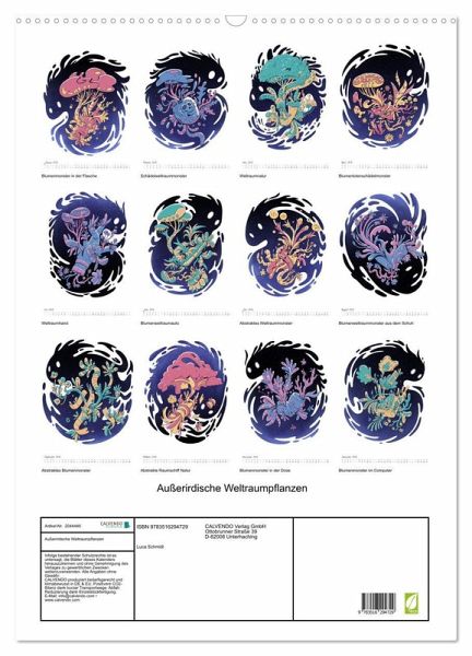 QUALITÄT - Hochwertiger Fotokalender mit 12 wunderschönen Motiven auf lichtbeständigem Bilderdruckpapier, robuste Spiralbindung mit Aufhängebügel.NACHHALTIG - deutliche Abfallreduzierung durch bedarfsgerechte Einzelstückfertigung, umweltfreundliches FSC-zertifiziertes Papier, Produktion in Deutschland, klimabewusste Logistik.PERFEKTES GESCHENK - Kalender für Freunde und Familie, für Kinder und Erwachsene, jung und alt, zu Weihnachten, Geburtstag oder zwischendurch.VIELFALT - Bildkalender in verschiedenen Formaten, z.B. DIN A5, DIN A4, DIN A3 sowie DIN A2. Ob Naturmotiv, Gemälde oder Fotos, ideal für ein persönliches Wohlfühlambiente.Mythische Pflanzenmonster im Weltraum. von Autor(in): Luca Schmidt