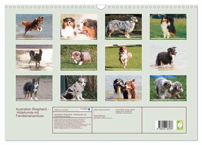 QUALITÄT - Hochwertiger Fotokalender mit 12 wunderschönen Motiven auf lichtbeständigem Bilderdruckpapier, robuste Spiralbindung mit Aufhängebügel.NACHHALTIG - deutliche Abfallreduzierung durch bedarfsgerechte Einzelstückfertigung, umweltfreundliches FSC-zertifiziertes Papier, Produktion in Deutschland, klimabewusste Logistik.PERFEKTES GESCHENK - Kalender für Freunde und Familie, für Kinder und Erwachsene, jung und alt, zu Weihnachten, Geburtstag oder zwischendurch.VIELFALT - Bildkalender in verschiedenen Formaten, z.B. DIN A5, DIN A4, DIN A3 sowie DIN A2. Ob Naturmotiv, Gemälde oder Fotos, ideal für ein persönliches Wohlfühlambiente.Bildkalender mit 13 wunderschönen Aufnahmen des Australian Shepherd von Autor(in): Barbara Mielewczyk