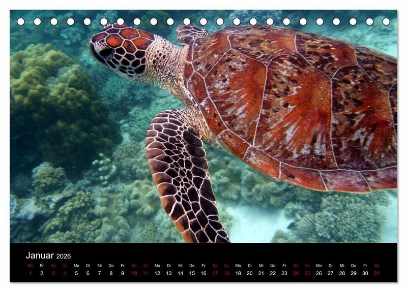 Januar: Grüne Meeresschildkröte, Great Barrier Reef