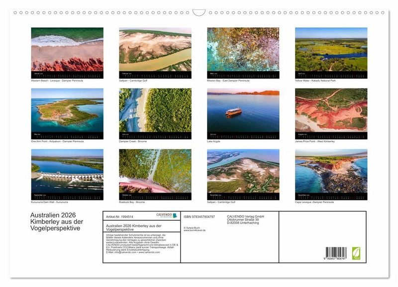 QUALITÄT - Hochwertiger Fotokalender mit 12 wunderschönen Motiven auf lichtbeständigem Bilderdruckpapier, robuste Spiralbindung mit Aufhängebügel.NACHHALTIG - deutliche Abfallreduzierung durch bedarfsgerechte Einzelstückfertigung, umweltfreundliches FSC-zertifiziertes Papier, Produktion in Deutschland, klimabewusste Logistik.PERFEKTES GESCHENK - Kalender für Freunde und Familie, für Kinder und Erwachsene, jung und alt, zu Weihnachten, Geburtstag oder zwischendurch.VIELFALT - Bildkalender in verschiedenen Formaten, z.B. DIN A5, DIN A4, DIN A3 sowie DIN A2. Ob Naturmotiv, Gemälde oder Fotos, ideal für ein persönliches Wohlfühlambiente.Die faszinierende Natur Nordwest Australiens aus ungewöhnlicher Perspektive. von Autor(in): Sylwia Buch