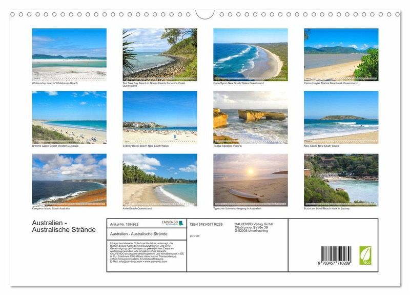 QUALITÄT - Hochwertiger Fotokalender mit 12 wunderschönen Motiven auf lichtbeständigem Bilderdruckpapier, robuste Spiralbindung mit Aufhängebügel.NACHHALTIG - deutliche Abfallreduzierung durch bedarfsgerechte Einzelstückfertigung, umweltfreundliches FSC-zertifiziertes Papier, Produktion in Deutschland, klimabewusste Logistik.PERFEKTES GESCHENK - Kalender für Freundeund Familie, für Kinder und Erwachsene, jung und alt, zu Weihnachten, Geburtstag oder zwischendurch.VIELFALT - Bildkalender in verschiedenen Formaten, z.B. DIN A5, DIN A4, DIN A3 sowie DIN A2. Ob Naturmotiv, Gemälde oder Fotos, ideal für ein persönliches Wohlfühlambiente.Der Kalender nimmt Sie mit auf eine Reise kreuz und quer durch den australischen Kontinent, hin zu seinen schönsten und eindrucksvollsten Stränden. von Autor(in): Fabian Junge