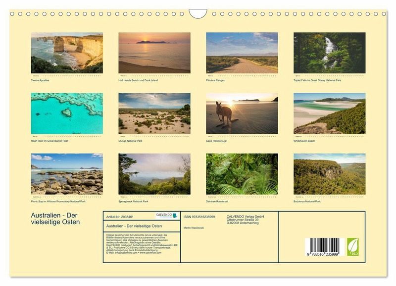 Australiens Landschaften sind einzigartig und vielseitig. Dieser Kalender nimmt Sie mit auf einer Reise quer durch den Osten des Kontinents. Erleben Sie die fesselnden Landschaften Australiens! Träumen Sie sich auf den "roten Kontinent"!