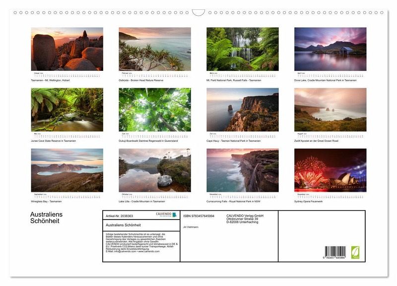 QUALITÄT - Hochwertiger Fotokalender mit 12 wunderschönen Motiven auf lichtbeständigem Bilderdruckpapier, robuste Spiralbindung mit Aufhängebügel.NACHHALTIG - deutliche Abfallreduzierung durch bedarfsgerechte Einzelstückfertigung, umweltfreundliches FSC-zertifiziertes Papier, Produktion in Deutschland, klimabewusste Logistik.PERFEKTES GESCHENK - Kalender für Freunde und Familie, für Kinder und Erwachsene, jung und alt, zu Weihnachten, Geburtstag oder zwischendurch.VIELFALT - Bildkalender in verschiedenen Formaten, z.B. DIN A5, DIN A4, DIN A3 sowie DIN A2. Ob Naturmotiv, Gemälde oder Fotos, ideal für ein persönliches Wohlfühlambiente.Stimmungsvolle Bilderreise durch Australien von Autor(in): Jiri Viehmann