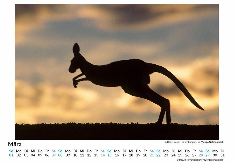 Entdecken Sie die faszinierende Tierwelt Australiens mit unserem hochwertigen Monats-Wandkalender! Lassen Sie sich Monat für Monat von atemberaubenden Motiven einzigartiger Tiere wie Kängurus, Koalas und farbenprächtigen Vögeln verzaubern. Jedes Bild wurde sorgfältig ausgewählt und auf lichtbeständigem, hochwertigem Bilderdruckpapier gedruckt, um Ihnen das ganze Jahr über Freude zu bereiten. Gedruckt in Deutschland auf FSC-zertifiziertem Papier, vereint dieser Kalender Nachhaltigkeit und Ästhetik. Perfekt als Geschenk oder für Ihr eigenes Zuhause - holen Sie sich ein Stück australische Wildnis an Ihre Wand! Jetzt bestellen und die Schönheit der Natur genießen! Hochwertig Erleben Sie ein Jahr voller Eleganz mit unserem Premium-Fotokalender. Jedes der 12 Motive ist auf hochwertigem, lichtbeständigem Bilderdruckpapier gedruckt, um die Lebendigkeit jedes Bildes zu bewahren. Die robuste Spiralbindung gewährleistet Langlebigkeit und einfache Handhabung. Nachhaltig Unser Engagement für die Umwelt spiegelt sich in jedem Exemplar wider. Durch die Produktion auf Abruf reduzieren wir signifikant unseren Abfall. Wir verwenden ausschließlich umweltfreundliches, FSC-zertifiziertes Papier. Stolz gefertigt in Deutschland, achten wir bei unserer Logistik auf Klimaschutz, um unseren ökologischen Fußabdruck zu minimieren. Das ideale Geschenk Dieser Kalender ist das perfekte Präsent für jeden Anlass - ob Weihnachten, Geburtstage oder einfach als liebevolle Aufmerksamkeit zwischendurch. Geeignet für Freunde, Familie, Kinder und Erwachsene gleichermaßen, bereichert er jedes Zuhause mit seiner Vielfalt und Schönheit, unabhängig vom Alter der Beschenkten.