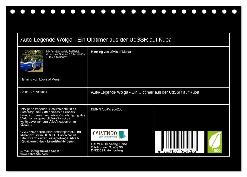 QUALITÄT - Hochwertiger Fotokalender mit 12 wunderschönen Motiven auf lichtbeständigem Bilderdruckpapier, robuste Spiralbindung.NACHHALTIG - deutliche Abfallreduzierung durch bedarfsgerechte Einzelstückfertigung, umweltfreundliches FSC-zertifiziertes Papier, Produktion in Deutschland, klimabewusste Logistik.PERFEKTES GESCHENK - Kalender für Freunde und Familie, für Kinder und Erwachsene, jung und alt, zu Weihnachten, Geburtstag oder zwischendurch.VIELFALT - Bildkalender in verschiedenen Formaten, z.B. DIN A5, DIN A4, DIN A3 sowie DIN A2. Ob Naturmotiv, Gemälde oder Fotos, ideal für ein persönliches Wohlfühlambiente.Der sowjetische Oldtimer WOLGA GAZ-24 auf Kuba von Autor(in): Henning von Loewis of Menar