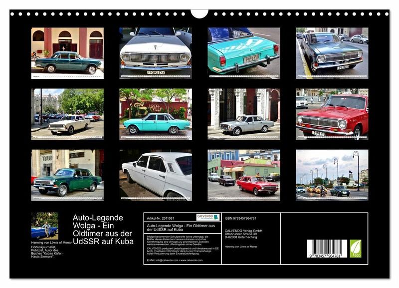 QUALITÄT - Hochwertiger Fotokalender mit 12 wunderschönen Motiven auf lichtbeständigem Bilderdruckpapier, robuste Spiralbindung mit Aufhängebügel.NACHHALTIG - deutliche Abfallreduzierung durch bedarfsgerechte Einzelstückfertigung, umweltfreundliches FSC-zertifiziertes Papier, Produktion in Deutschland, klimabewusste Logistik.PERFEKTES GESCHENK - Kalender für Freunde und Familie, für Kinder und Erwachsene, jung und alt, zu Weihnachten, Geburtstag oder zwischendurch.VIELFALT - Bildkalender in verschiedenen Formaten, z.B. DIN A5, DIN A4, DIN A3 sowie DIN A2. Ob Naturmotiv, Gemälde oder Fotos, ideal für ein persönliches Wohlfühlambiente.Der sowjetische Oldtimer WOLGA GAZ-24 auf Kuba von Autor(in): Henning von Loewis of Menar