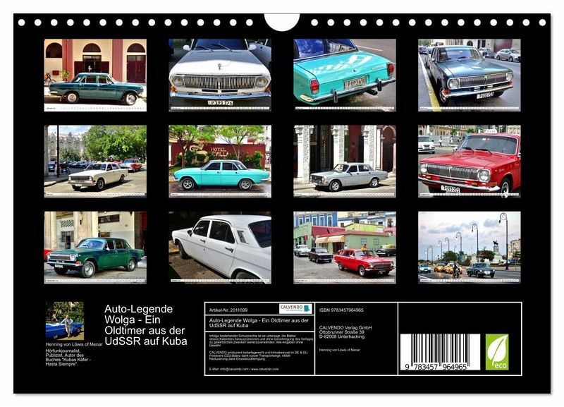QUALITÄT - Hochwertiger Fotokalender mit 12 wunderschönen Motiven auf lichtbeständigem Bilderdruckpapier, robuste Spiralbindung mit Aufhängebügel.NACHHALTIG - deutliche Abfallreduzierung durch bedarfsgerechte Einzelstückfertigung, umweltfreundliches FSC-zertifiziertes Papier, Produktion in Deutschland, klimabewusste Logistik.PERFEKTES GESCHENK - Kalender für Freunde und Familie, für Kinder und Erwachsene, jung und alt, zu Weihnachten, Geburtstag oder zwischendurch.VIELFALT - Bildkalender in verschiedenen Formaten, z.B. DIN A5, DIN A4, DIN A3 sowie DIN A2. Ob Naturmotiv, Gemälde oder Fotos, ideal für ein persönliches Wohlfühlambiente.Der sowjetische Oldtimer WOLGA GAZ-24 auf Kuba von Autor(in): Henning von Loewis of Menar