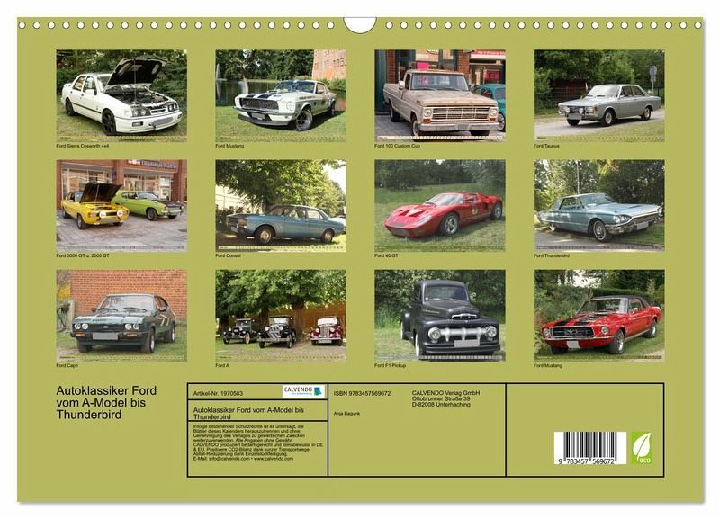 QUALITÄT - Hochwertiger Fotokalender mit 12 wunderschönen Motiven auf lichtbeständigem Bilderdruckpapier, robuste Spiralbindung mit Aufhängebügel.NACHHALTIG - deutliche Abfallreduzierung durch bedarfsgerechte Einzelstückfertigung, umweltfreundliches FSC-zertifiziertes Papier, Produktion in Deutschland, klimabewusste Logistik.PERFEKTES GESCHENK - Kalender für Freunde und Familie, für Kinder und Erwachsene, jung und alt, zu Weihnachten, Geburtstag oder zwischendurch.VIELFALT - Bildkalender in verschiedenen Formaten, z.B. DIN A5, DIN A4, DIN A3 sowie DIN A2. Ob Naturmotiv, Gemälde oder Fotos, ideal für ein persönliches Wohlfühlambiente.Nostalgische Fahrzeuge der Marke Ford von Autor(in): Anja Bagunk