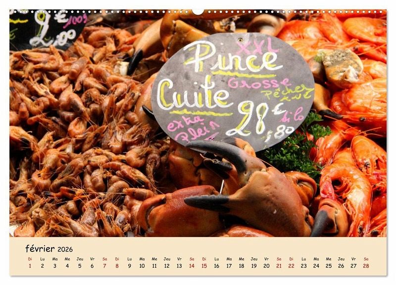 Mon calendrier contient des photos prises lors de mes visites sur les marchés hebdomadaires en France. Il existe de nombreux produits qui reflètent la cuisine et le savoir-vivre français.