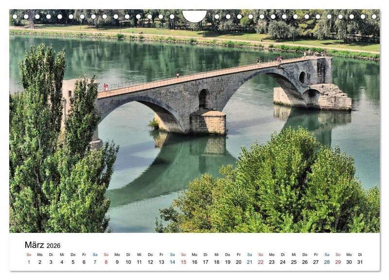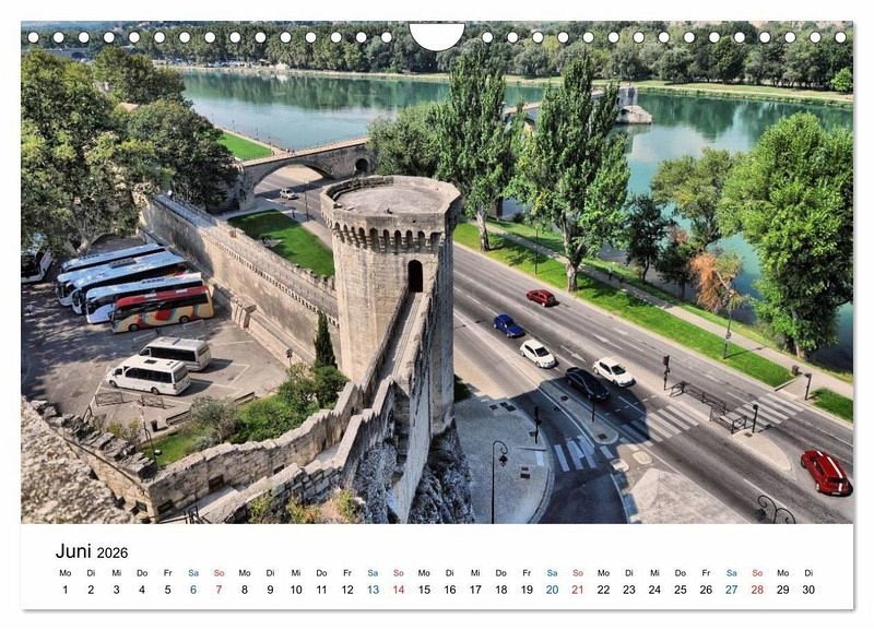 Die Altstadt von Avignon mit ihren prächtigen, mittelalterlichen Häusern ist von einer intakten und imposanten Befestigungsmauer umgeben. Die Altstadt mit dem Papstpalast aus dem 14. Jahrhundert und der berühmten Brücke, der Pont St. Bénézet, zählt zum UNESCO-Weltkulturerbe. Dieser Kalender möchte dazu animieren, diese wunderschöne Stadt einmal zu besuchen.