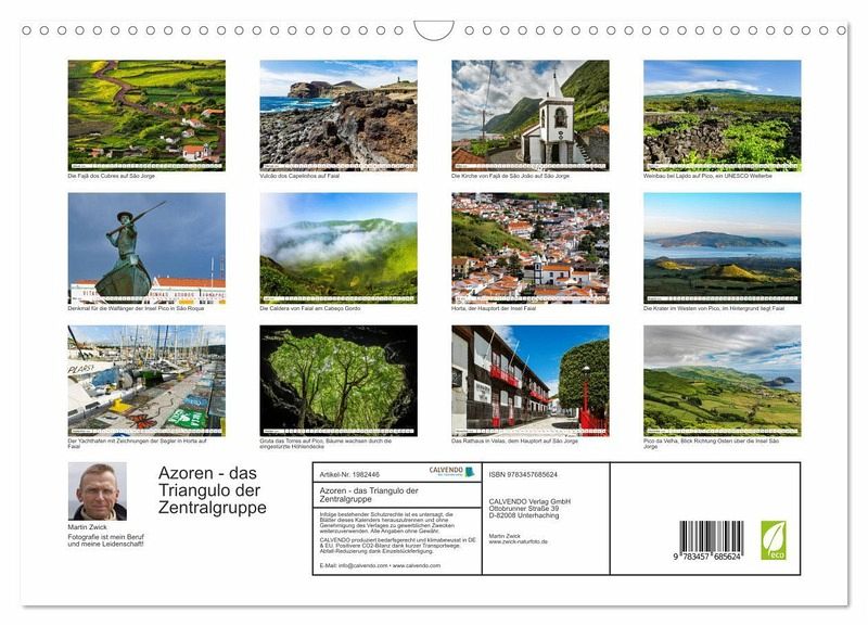 QUALITÄT - Hochwertiger Fotokalender mit 12 wunderschönen Motiven auf lichtbeständigem Bilderdruckpapier, robuste Spiralbindung mit Aufhängebügel.NACHHALTIG - deutliche Abfallreduzierung durch bedarfsgerechte Einzelstückfertigung, umweltfreundliches FSC-zertifiziertes Papier, Produktion in Deutschland, klimabewusste Logistik.PERFEKTES GESCHENK - Kalender für Freunde und Familie, für Kinder und Erwachsene, jung und alt, zu Weihnachten, Geburtstag oder zwischendurch.VIELFALT - Bildkalender in verschiedenen Formaten, z.B. DIN A5, DIN A4, DIN A3 sowie DIN A2. Ob Naturmotiv, Gemälde oder Fotos, ideal für ein persönliches Wohlfühlambiente.Gehen Sie auf eine Bilderreise durch faszinierende Inseln der Azoren von Autor(in): Martin Zwick