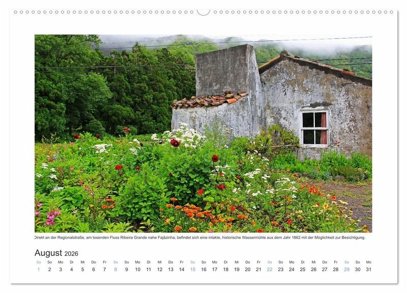 August: Westen: Wassermühle am Fluss Ribeira Grande