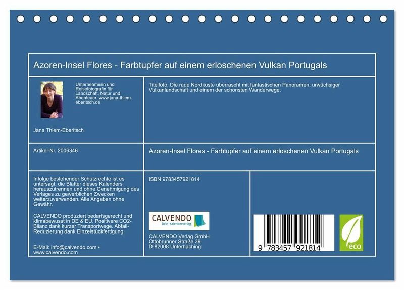 QUALITÄT - Hochwertiger Fotokalender mit 12 wunderschönen Motiven auf lichtbeständigem Bilderdruckpapier, robuste Spiralbindung.NACHHALTIG - deutliche Abfallreduzierung durch bedarfsgerechte Einzelstückfertigung, umweltfreundliches FSC-zertifiziertes Papier, Produktion in Deutschland, klimabewusste Logistik.PERFEKTES GESCHENK - Kalender für Freunde und Familie, für Kinder und Erwachsene, jung und alt, zu Weihnachten, Geburtstag oder zwischendurch.VIELFALT - Bildkalender in verschiedenen Formaten, z.B. DIN A5, DIN A4, DIN A3 sowie DIN A2. Ob Naturmotiv, Gemälde oder Fotos, ideal für ein persönliches Wohlfühlambiente.Die wildromantische Insel der Blumen gilt als Geheimtipp für Wanderer und Naturliebhaber. von Autor(in): Jana Thiem-Eberitsch
