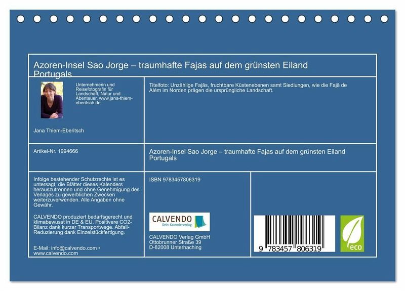 Hochwertiger Tischkalender zum Aufstellen mit 12 wunderschönen Bildern. Unsere Umwelt liegt uns am Herzen. Daher verwenden wir ausschließlich FSC-zertifizierte Papiere aus verantwortungsvoller Waldwirtschaft. Wir vermeiden Überproduktion und somit deutliche Abfallmengen, da wir bedarfsgerecht in Einzelfertigung in Deutschland (Made in Germany) produzieren. Wir halten unsere Transportwege kurz und sorgen für eine klimabewusste Logistik.