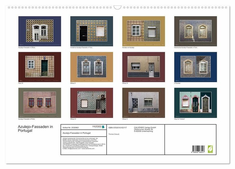 QUALITÄT - Hochwertiger Fotokalender mit 12 wunderschönen Motiven auf lichtbeständigem Bilderdruckpapier, robuste Spiralbindung mit Aufhängebügel.NACHHALTIG - deutliche Abfallreduzierung durch bedarfsgerechte Einzelstückfertigung, umweltfreundliches FSC-zertifiziertes Papier, Produktion in Deutschland, klimabewusste Logistik.PERFEKTES GESCHENK - Kalender für Freunde und Familie, für Kinder und Erwachsene, jung und alt, zu Weihnachten, Geburtstag oder zwischendurch.VIELFALT - Bildkalender in verschiedenen Formaten,z.B. DIN A5, DIN A4, DIN A3 sowie DIN A2. Ob Naturmotiv, Gemälde oder Fotos, ideal für ein persönliches Wohlfühlambiente.12 typische Beispiele von Azulejo-Fassaden in Portugal von Autor(in): Thomas Gnauck
