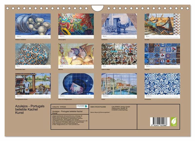 QUALITÄT - Hochwertiger Fotokalender mit 12 wunderschönen Motiven auf lichtbeständigem Bilderdruckpapier, robuste Spiralbindung mit Aufhängebügel.NACHHALTIG - deutliche Abfallreduzierung durch bedarfsgerechte Einzelstückfertigung, umweltfreundliches FSC-zertifiziertes Papier, Produktion in Deutschland, klimabewusste Logistik.PERFEKTES GESCHENK - Kalender für Freunde und Familie, für Kinder und Erwachsene, jung und alt, zu Weihnachten, Geburtstag oder zwischendurch.VIELFALT - Bildkalender in verschiedenen Formaten, z.B. DIN A5, DIN A4, DIN A3 sowie DIN A2. Ob Naturmotiv, Gemälde oder Fotos, ideal für ein persönliches Wohlfühlambiente.Bilder aus Kacheln sind in Portugal eine beliebte Kunst von Autor(in): Stimmungsbilder1