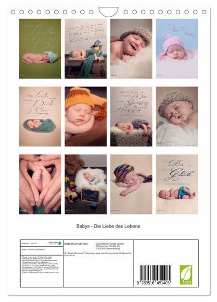 QUALITÄT - Hochwertiger Fotokalender mit 12 wunderschönen Motiven auf lichtbeständigem Bilderdruckpapier, robuste Spiralbindung mit Aufhängebügel.NACHHALTIG - deutliche Abfallreduzierung durch bedarfsgerechte Einzelstückfertigung, umweltfreundliches FSC-zertifiziertes Papier, Produktion in Deutschland, klimabewusste Logistik.PERFEKTES GESCHENK - Kalender für Freunde und Familie, für Kinder und Erwachsene, jung und alt, zu Weihnachten, Geburtstag oder zwischendurch.VIELFALT - Bildkalender in verschiedenen Formaten, z.B. DIN A5, DIN A4, DIN A3 sowie DIN A2. Ob Naturmotiv, Gemälde oder Fotos, ideal für ein persönliches Wohlfühlambiente.Neugeborene liebevoll fotografiert von Autor(in): Sylwia Lorenz