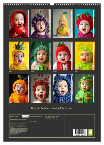 PREMIUM-LINIE - Brillanter Fotokalender mit 12 wunderschönen Motiven, Kunstdruck in Hochglanz in Museumsqualität.QUALITÄT - edle Materialien, stabile Rückwand mit 2 innovativen Einstecktaschen für eine optimale Präsentation an der Wand.NACHHALTIG - deutliche Abfallreduzierung durch bedarfsgerechte Einzelstückfertigung, umweltfreundliches FSC-zertifiziertes Papier, Produktion in Deutschland, klimabewusste Logistik.PERFEKTES GESCHENK - Kalender für Freunde und Familie, für Kinder und Erwachsene, jung und alt, zu Weihnachten, Geburtstag oder zwischendurch.Ein Jahr voller Babylachen, Obstwahnsinn und absoluter Fruchtgarantie! von Autor(in): Dirk Meutzner