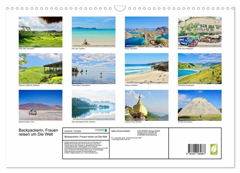 Dieser Kalender begleitet dich als Backpackerin einmal um die Welt. Jeden Monat erwartet dich ein neues Abenteuer, ein neues Land, eine neue Kultur. Also pack deinen Rucksack und los geht's!