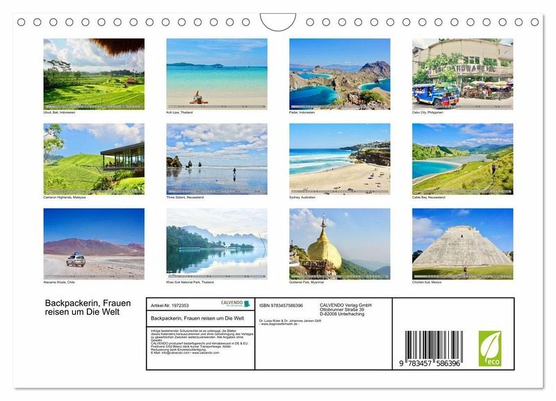 Dieser Kalender begleitet dich als Backpackerin einmal um die Welt. Jeden Monat erwartet dich ein neues Abenteuer, ein neues Land, eine neue Kultur. Also pack deinen Rucksack und los geht's!