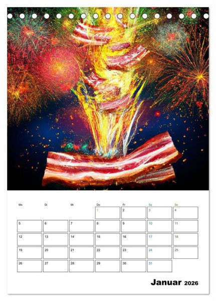 Der Bacon-Kalender - Wir lieben Bacon ist die perfekte Geschenkidee für alle, die gerne Bacon essen (nicht nur Sonntags zum Frühstück). Der Kalender hat 12 witzige Motive mit Bacon Bildern. Der Wandkalender ist auch ein Planer, so dass du deine Termine und Ereignisse immer im Blick haben.