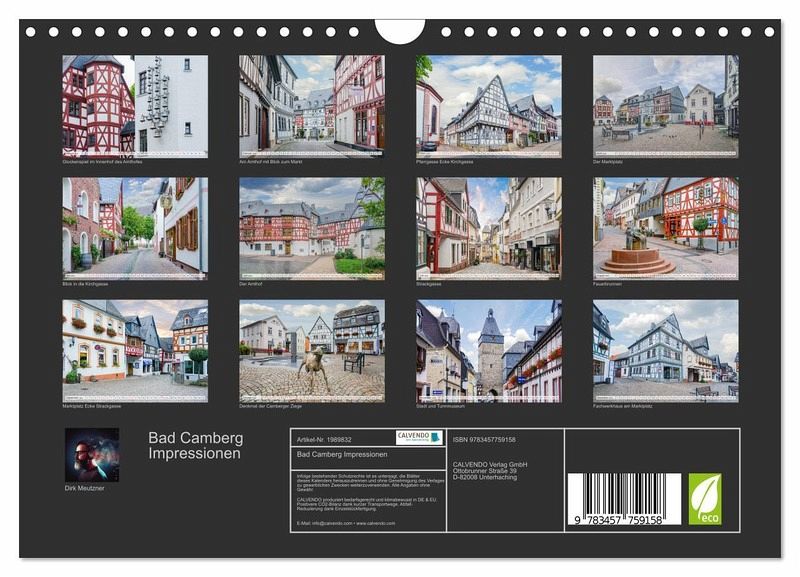 QUALITÄT - Hochwertiger Fotokalender mit 12 wunderschönen Motiven auf lichtbeständigem Bilderdruckpapier, robuste Spiralbindung mit Aufhängebügel.NACHHALTIG - deutliche Abfallreduzierung durch bedarfsgerechte Einzelstückfertigung, umweltfreundliches FSC-zertifiziertes Papier, Produktion in Deutschland, klimabewusste Logistik.PERFEKTES GESCHENK - Kalender für Freunde und Familie, für Kinder und Erwachsene, jung und alt, zu Weihnachten, Geburtstag oder zwischendurch.VIELFALT - Bildkalender in verschiedenen Formaten, z.B. DIN A5, DIN A4, DIN A3 sowie DIN A2. Ob Naturmotiv, Gemälde oder Fotos, ideal für ein persönliches Wohlfühlambiente.Der Ort Bad Camberg dargestellt auf zwölf einmaligen Bildern von Autor(in): Dirk Meutzner