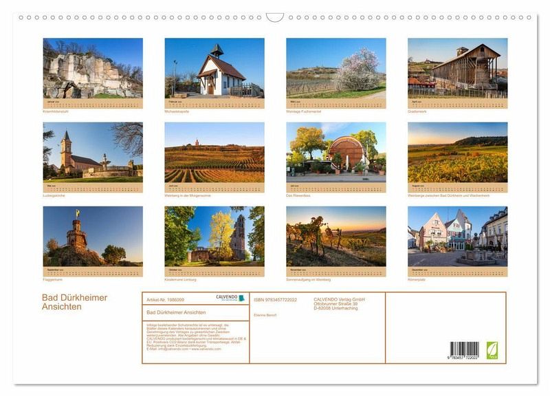 QUALITÄT - Hochwertiger Fotokalender mit 12 wunderschönen Motiven auf lichtbeständigem Bilderdruckpapier, robuste Spiralbindung mit Aufhängebügel.NACHHALTIG - deutliche Abfallreduzierung durch bedarfsgerechte Einzelstückfertigung, umweltfreundliches FSC-zertifiziertes Papier, Produktion in Deutschland, klimabewusste Logistik.PERFEKTES GESCHENK - Kalender für Freunde und Familie, für Kinder und Erwachsene, jung und alt, zu Weihnachten, Geburtstag oder zwischendurch.VIELFALT - Bildkalender in verschiedenen Formaten, z.B. DIN A5, DIN A4, DIN A3 sowie DIN A2. Ob Naturmotiv, Gemälde oder Fotos, ideal für ein persönliches Wohlfühlambiente.Ein Streifzug durch die Kurstadt an der Weinstraße von Autor(in): Etienne Benoît