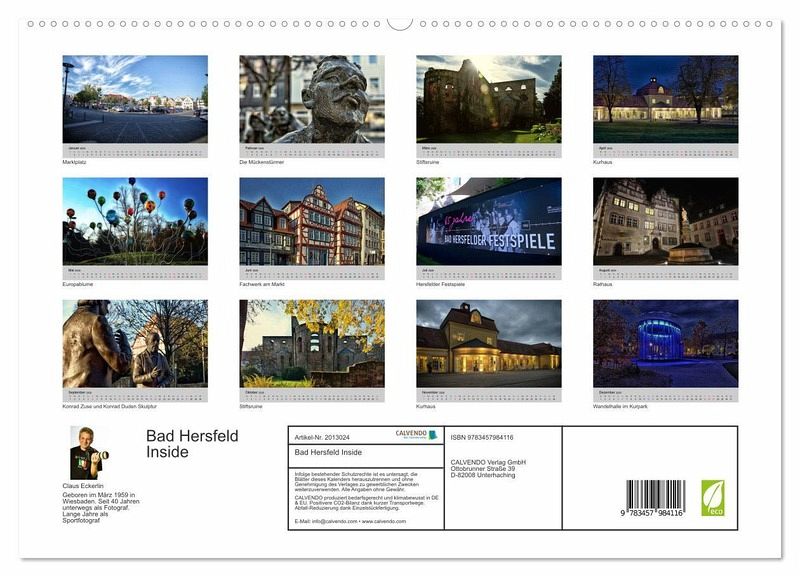 PREMIUM-LINIE - Brillanter Fotokalender mit 12 wunderschönen Motiven, Kunstdruck in Hochglanz in Museumsqualität.QUALITÄT - edle Materialien, stabile Rückwand mit 2 innovativen Einstecktaschen für eine optimale Präsentation an der Wand.NACHHALTIG - deutliche Abfallreduzierung durch bedarfsgerechte Einzelstückfertigung, umweltfreundliches FSC-zertifiziertes Papier, Produktion in Deutschland, klimabewusste Logistik.PERFEKTES GESCHENK - Kalender für Freunde und Familie, für Kinder und Erwachsene, jung und alt, zu Weihnachten, Geburtstag oder zwischendurch.Idyllische Kurstadt in Nordhessen von Autor(in): Claus Eckerlin