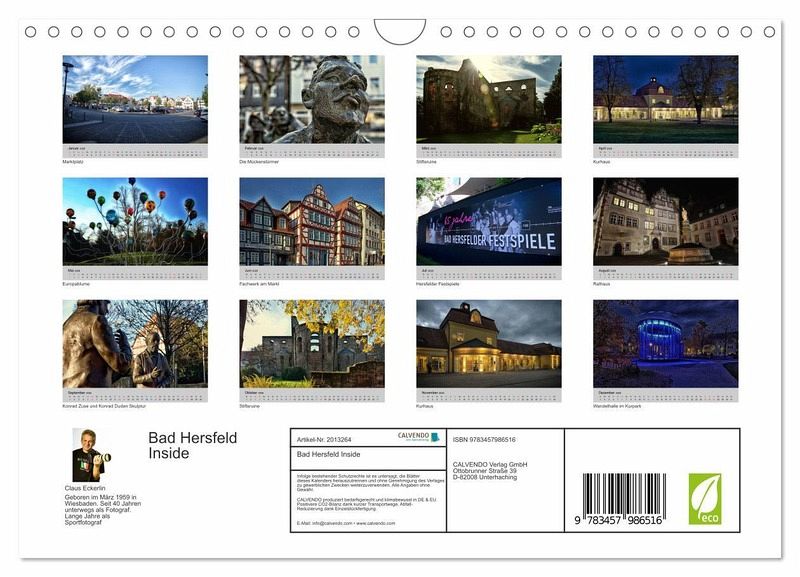 QUALITÄT - Hochwertiger Fotokalender mit 12 wunderschönen Motiven auf lichtbeständigem Bilderdruckpapier, robuste Spiralbindung mit Aufhängebügel.NACHHALTIG - deutliche Abfallreduzierung durch bedarfsgerechte Einzelstückfertigung, umweltfreundliches FSC-zertifiziertes Papier, Produktion in Deutschland, klimabewusste Logistik.PERFEKTES GESCHENK - Kalender für Freunde und Familie, für Kinder und Erwachsene, jung und alt, zu Weihnachten, Geburtstag oder zwischendurch.VIELFALT - Bildkalender in verschiedenen Formaten, z.B. DIN A5, DIN A4, DIN A3 sowie DIN A2. Ob Naturmotiv, Gemälde oder Fotos, ideal für ein persönliches Wohlfühlambiente.Idyllische Kurstadt in Nordhessen von Autor(in): Claus Eckerlin