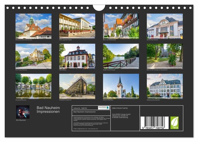 QUALITÄT - Hochwertiger Fotokalender mit 12 wunderschönen Motiven auf lichtbeständigem Bilderdruckpapier, robuste Spiralbindung mit Aufhängebügel.NACHHALTIG - deutliche Abfallreduzierung durch bedarfsgerechte Einzelstückfertigung, umweltfreundliches FSC-zertifiziertes Papier, Produktion in Deutschland, klimabewusste Logistik.PERFEKTES GESCHENK - Kalender für Freunde und Familie, für Kinder und Erwachsene, jung und alt, zu Weihnachten, Geburtstag oder zwischendurch.VIELFALT - Bildkalender in verschiedenen Formaten, z.B. DIN A5, DIN A4, DIN A3 sowie DINA2. Ob Naturmotiv, Gemälde oder Fotos, ideal für ein persönliches Wohlfühlambiente.Einmalig schöne Bilder der Stadt Bad Nauheim von Autor(in): Dirk Meutzner