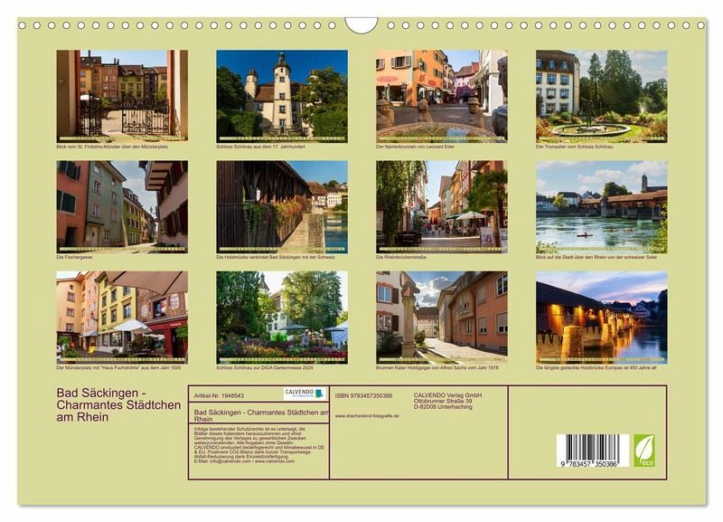 QUALITÄT - Hochwertiger Fotokalender mit 12 wunderschönen Motiven auf lichtbeständigem Bilderdruckpapier, robuste Spiralbindung mit Aufhängebügel.NACHHALTIG - deutliche Abfallreduzierung durch bedarfsgerechte Einzelstückfertigung, umweltfreundliches FSC-zertifiziertes Papier, Produktion in Deutschland, klimabewusste Logistik.PERFEKTES GESCHENK - Kalender für Freunde und Familie, für Kinder und Erwachsene, jung und alt, zu Weihnachten, Geburtstag oder zwischendurch.VIELFALT - Bildkalender in verschiedenen Formaten, z.B. DIN A5, DIN A4, DIN A3 sowie DIN A2. Ob Naturmotiv, Gemälde oder Fotos, ideal für ein persönliches Wohlfühlambiente.Malerischer Ort Bad Säckingen am Rhein von Autor(in): drachenkind-fotografie