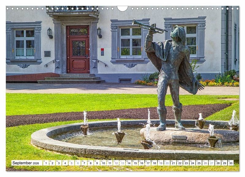 Bad Säckingen, wunderschön am Rhein gelegen, hat neben einer gemütlichen Altstadt mit vielen Cafés und Restaurants auch sehenswerte Besuchsjuwelen wie den bekannten Schlosspark mit dem Trompeter von Bad Säckingen und das Fridolin Münster. Die längste Holzbrücke Europas führt über den Rhein zur Schweiz. Dieser Kalender zeigt die schönsten Orte.
