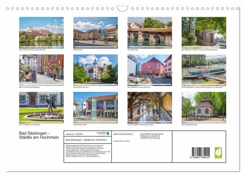 QUALITÄT - Hochwertiger Fotokalender mit 12 wunderschönen Motiven auf lichtbeständigem Bilderdruckpapier, robuste Spiralbindung mit Aufhängebügel.NACHHALTIG - deutliche Abfallreduzierung durch bedarfsgerechte Einzelstückfertigung, umweltfreundliches FSC-zertifiziertes Papier, Produktion in Deutschland, klimabewusste Logistik.PERFEKTES GESCHENK - Kalender für Freunde und Familie, für Kinder und Erwachsene, jung und alt, zu Weihnachten, Geburtstag oder zwischendurch.VIELFALT - Bildkalender in verschiedenen Formaten, z.B. DIN A5, DIN A4, DIN A3 sowie DIN A2. Ob Naturmotiv, Gemälde oder Fotos, ideal für ein persönliches Wohlfühlambiente.Ein Stadtportrait von Bad Säckingen von Autor(in): Liselotte Brunner-Klaus