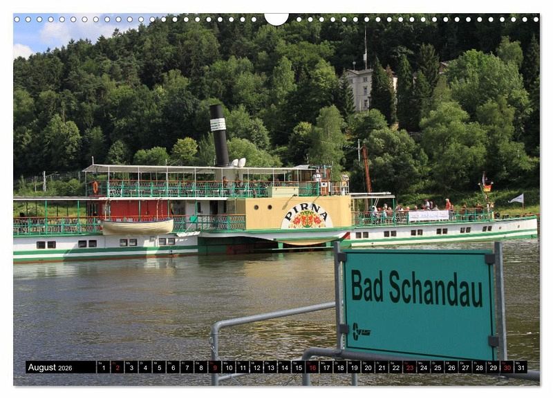 August: Schaufelraddampfet "Pirna" beim Ablegemanöver am Pier von Bad Schandau