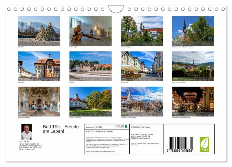 QUALITÄT - Hochwertiger Fotokalender mit 12 wunderschönen Motiven auf lichtbeständigem Bilderdruckpapier, robuste Spiralbindung mit Aufhängebügel.NACHHALTIG - deutliche Abfallreduzierung durch bedarfsgerechte Einzelstückfertigung, umweltfreundliches FSC-zertifiziertes Papier, Produktion in Deutschland, klimabewusste Logistik.PERFEKTES GESCHENK - Kalender für Freunde und Familie, für Kinder und Erwachsene, jung und alt, zu Weihnachten, Geburtstag oder zwischendurch.VIELFALT - Bildkalender in verschiedenen Formaten, z.B. DIN A5, DIN A4, DIN A3 sowie DIN A2. Ob Naturmotiv, Gemälde oder Fotos, ideal für ein persönliches Wohlfühlambiente.Im Herzen von Oberbayern liegt Bad Tölz, der lebendige und liebenswerte Kurort an der Isar. von Autor(in): Harry Kübler