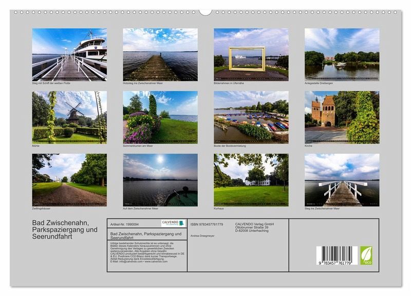 Stimmungsvolle Aufnahmen von Bad Zwischenahn wurden hier in dem Kalender festgehalten. Diese Auswahl zeigt einige Sehenswürdigkeiten von Bad Zwischenahn am Meer, verschiedene Holzstege und das weite flache Land. Machen Sie Monat für Monat den Rundgang durch den Kurpark und gehen Sie mit auf das Schiff der weißen Flotte.