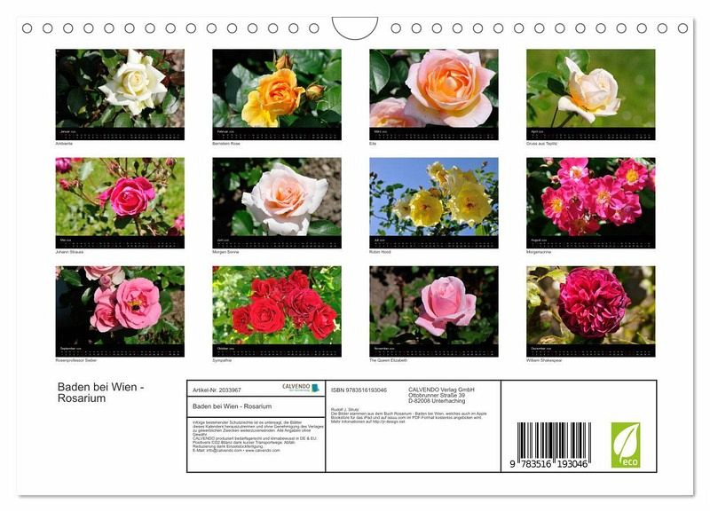 QUALITÄT - Hochwertiger Fotokalender mit 12 wunderschönen Motiven auf lichtbeständigem Bilderdruckpapier, robuste Spiralbindung mit Aufhängebügel.NACHHALTIG - deutliche Abfallreduzierung durch bedarfsgerechte Einzelstückfertigung, umweltfreundliches FSC-zertifiziertes Papier, Produktion in Deutschland, klimabewusste Logistik.PERFEKTES GESCHENK - Kalender für Freunde und Familie, für Kinder und Erwachsene, jung und alt, zu Weihnachten, Geburtstag oder zwischendurch.VIELFALT - Bildkalender in verschiedenen Formaten, z.B. DIN A5, DIN A4, DIN A3 sowie DIN A2. Ob Naturmotiv, Gemälde oder Fotos, ideal für ein persönliches Wohlfühlambiente.Das größte Rosarium Österreichs liegt in Baden bei Wien von Autor(in): rsvienna