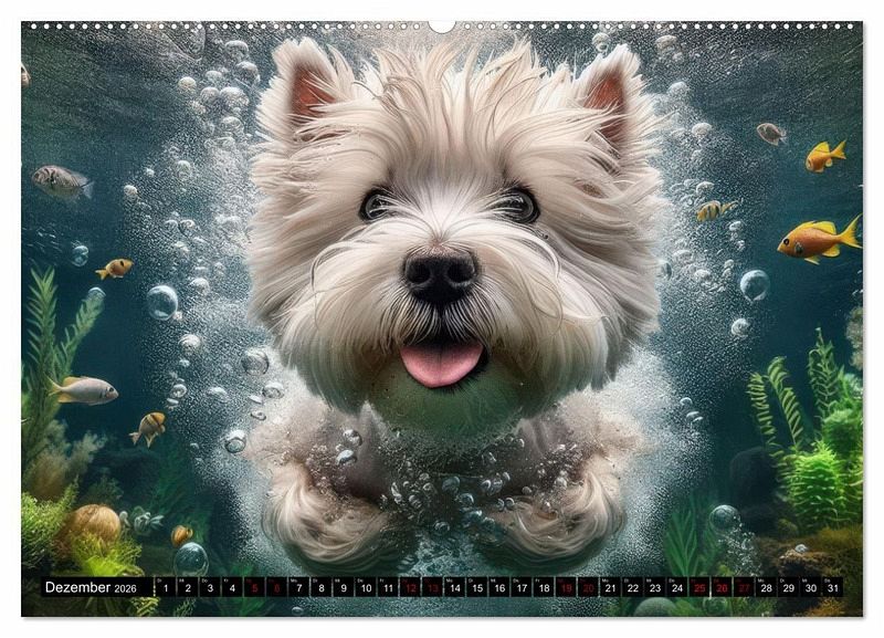Dezember: West Highland Terrier taucht glücklich unter Wasser