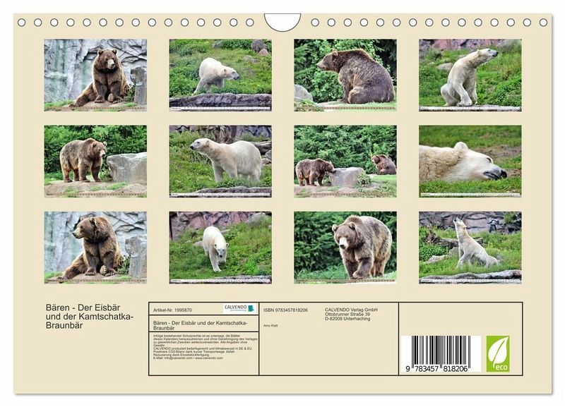 QUALITÄT - Hochwertiger Fotokalender mit 12 wunderschönen Motiven auf lichtbeständigem Bilderdruckpapier, robuste Spiralbindung mit Aufhängebügel.NACHHALTIG - deutliche Abfallreduzierung durch bedarfsgerechte Einzelstückfertigung, umweltfreundliches FSC-zertifiziertes Papier, Produktion in Deutschland, klimabewusste Logistik.PERFEKTES GESCHENK - Kalender für Freunde und Familie, für Kinder und Erwachsene, jung und alt, zu Weihnachten, Geburtstag oder zwischendurch.VIELFALT - Bildkalender in verschiedenen Formaten, z.B. DIN A5, DIN A4, DIN A3 sowie DIN A2. Ob Naturmotiv, Gemälde oder Fotos, ideal für ein persönliches Wohlfühlambiente.Bären aus zwei Kontinenten von Autor(in): Arno Klatt