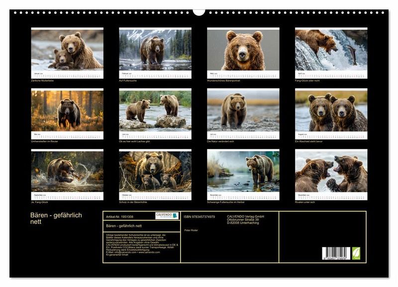 Entdecken Sie die majestätische Welt der Braunbären mit diesem fesselnden Braunbärenkalender. Die liebevoll "Meister Petz" genannten prächtigen Tiere werden in ihren unterschiedlichen Lebenssituationen dargestellt, von verspielten Momenten bis hin zu kraftvollen Auftritten. Bewundern Sie ihr pausbäckiges, liebenswertes Aussehen und ihre wachen Augen, die die Herzen der Menschen weltweit erobern. Ihre imposante Größe erinnert uns an ihren rechtmäßigen Platz in der Wildnis. Der Fotokünstler Peter Roder hat beeindruckende, lebensnahe Ki-Bilder gestaltet und zusammengestellt. Perfekt für…mehr