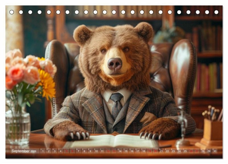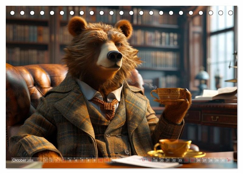 Tauchen Sie ein in die faszinierende Welt der britischen Bürokultur, während majestätische Bären die Szenerie beherrschen. Jeden Monat präsentiert Ihnen dieser einzigartige Kalender eine neue, charmante Illustration, die die Essenz des traditionellen britischen Büros einfängt, dieser Kalender wird Sie mit seinem unverwechselbaren Charme begeistern. Die hochwertigen Bilder und das sorgfältig gestaltete Layout machen diesen Kalender nicht nur zu einem Blickfang an Ihrer Bürowand, sondern auch zu einem perfekten Geschenk für Bärenliebhaber und Fans der britischen Kultur.