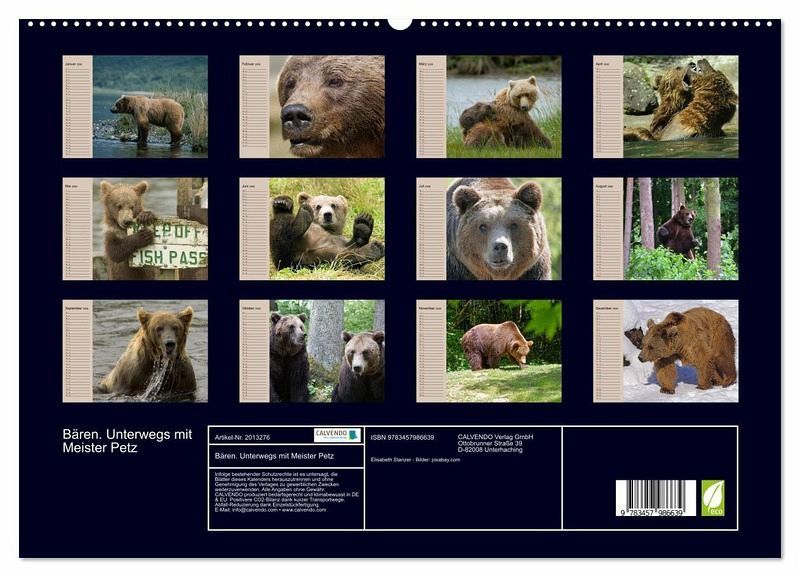 Sie sind Sohlengänger und für Honig nehmen sie sogar Bienenstiche in Kauf. Sie können graben und scharren, klettern und schnell laufen und sie können Hiebe austeilen. Meister Petz ist wirklich unglaublich vielseitig aber eigentlich gutmütig und kein Fleischfresser. Bis auf Fisch den er sich fängt ist er eigentlich Vegetarier und genießt Beeren. Bären sind kraftvolle Teddys mit unglaublichen Fähigkeiten. Ein toller Bären-Planer für Teddy-Fans.