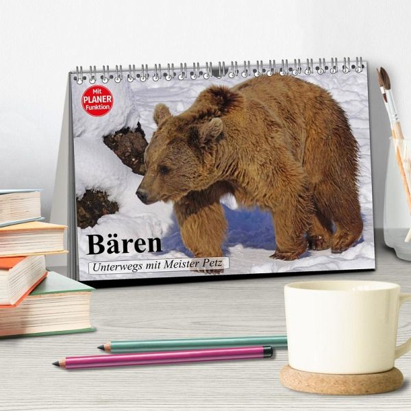 Sie sind Sohlengänger und für Honig nehmen sie sogar Bienenstiche in Kauf. Sie können graben und scharren, klettern und schnell laufen und sie können Hiebe austeilen. Meister Petz ist wirklich unglaublich vielseitig aber eigentlich gutmütig und kein Fleischfresser. Bis auf Fisch den er sich fängt ist er eigentlich Vegetarier und genießt Beeren. Bären sind kraftvolle Teddys mit unglaublichen Fähigkeiten. Ein toller Bären-Planer für Teddy-Fans.