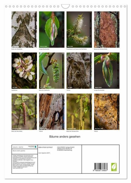 QUALITÄT - Hochwertiger Fotokalender mit 12 wunderschönen Motiven auf lichtbeständigem Bilderdruckpapier, robuste Spiralbindung mit Aufhängebügel.NACHHALTIG - deutliche Abfallreduzierung durch bedarfsgerechte Einzelstückfertigung, umweltfreundliches FSC-zertifiziertes Papier, Produktion in Deutschland, klimabewusste Logistik.PERFEKTES GESCHENK - Kalender für Freunde und Familie, für Kinder und Erwachsene, jung und alt, zu Weihnachten, Geburtstag oder zwischendurch.VIELFALT - Bildkalender in verschiedenen Formaten, z.B. DIN A5, DIN A4, DIN A3 sowie DIN A2. Ob Naturmotiv, Gemälde oder Fotos, ideal für ein persönliches Wohlfühlambiente.Bäume, aus der Nähe betrachtet von Autor(in):Leon Uppena