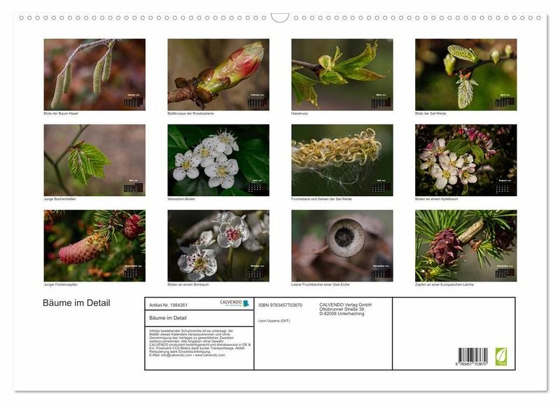 QUALITÄT - Hochwertiger Fotokalender mit 12 wunderschönen Motiven auf lichtbeständigem Bilderdruckpapier, robuste Spiralbindung mit Aufhängebügel.NACHHALTIG - deutliche Abfallreduzierung durch bedarfsgerechte Einzelstückfertigung, umweltfreundliches FSC-zertifiziertes Papier, Produktion in Deutschland, klimabewusste Logistik.PERFEKTES GESCHENK - Kalender für Freunde und Familie, für Kinder und Erwachsene, jung und alt, zu Weihnachten, Geburtstag oder zwischendurch.VIELFALT - Bildkalender in verschiedenen Formaten, z.B. DIN A5, DIN A4, DIN A3 sowie DIN A2. Ob Naturmotiv, Gemälde oder Fotos, ideal für ein persönliches Wohlfühlambiente.Der Kalender zeigt Detailaufnahmen von Bäumen von Autor(in): Leon Uppena
