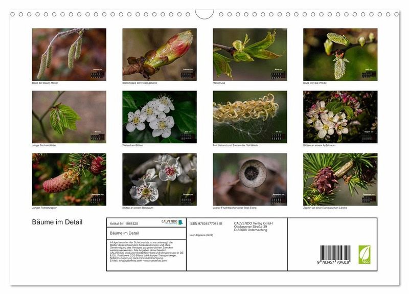 QUALITÄT - Hochwertiger Fotokalender mit 12 wunderschönen Motiven auf lichtbeständigem Bilderdruckpapier, robuste Spiralbindung mit Aufhängebügel.NACHHALTIG - deutliche Abfallreduzierung durch bedarfsgerechte Einzelstückfertigung, umweltfreundliches FSC-zertifiziertes Papier, Produktion in Deutschland, klimabewusste Logistik.PERFEKTES GESCHENK - Kalender für Freunde und Familie, für Kinder und Erwachsene, jung und alt, zu Weihnachten, Geburtstag oder zwischendurch.VIELFALT - Bildkalender in verschiedenen Formaten, z.B. DIN A5, DIN A4, DIN A3 sowie DIN A2. Ob Naturmotiv, Gemälde oder Fotos, ideal für ein persönliches Wohlfühlambiente.Der Kalender zeigt Detailaufnahmen von Bäumen von Autor(in): Leon Uppena