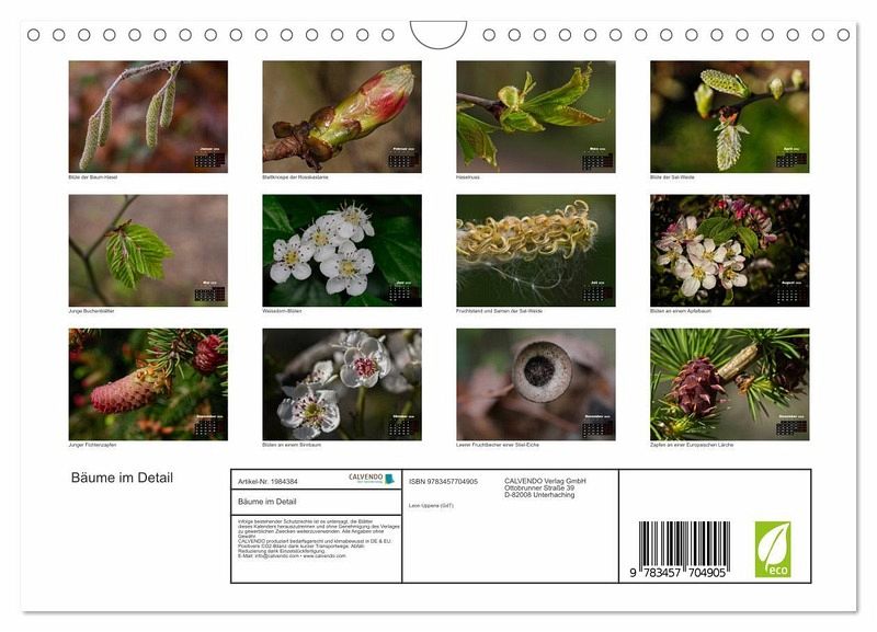 QUALITÄT - Hochwertiger Fotokalender mit 12 wunderschönen Motiven auf lichtbeständigem Bilderdruckpapier, robuste Spiralbindung mit Aufhängebügel.NACHHALTIG - deutliche Abfallreduzierung durch bedarfsgerechte Einzelstückfertigung, umweltfreundliches FSC-zertifiziertes Papier, Produktion in Deutschland, klimabewusste Logistik.PERFEKTES GESCHENK - Kalender für Freunde und Familie, für Kinder und Erwachsene, jung und alt, zu Weihnachten, Geburtstag oder zwischendurch.VIELFALT - Bildkalender in verschiedenen Formaten, z.B. DIN A5, DIN A4, DIN A3 sowie DIN A2. Ob Naturmotiv, Gemälde oder Fotos, ideal für ein persönliches Wohlfühlambiente.Der Kalender zeigt Detailaufnahmen von Bäumen von Autor(in): Leon Uppena