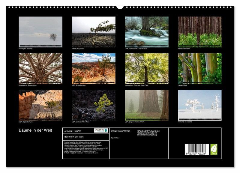 PREMIUM-LINIE - Brillanter Fotokalender mit 12 wunderschönen Motiven, Kunstdruck in Hochglanz in Museumsqualität.QUALITÄT - edle Materialien, stabile Rückwand mit 2 innovativen Einstecktaschen für eine optimale Präsentation an der Wand.NACHHALTIG - deutliche Abfallreduzierung durch bedarfsgerechte Einzelstückfertigung, umweltfreundliches FSC-zertifiziertes Papier, Produktion in Deutschland, klimabewusste Logistik.PERFEKTES GESCHENK - Kalender für Freunde und Familie, für Kinder und Erwachsene, jung und alt, zu Weihnachten, Geburtstag oder zwischendurch.Eine Reise um die Welt zu verschiedenen Bäumen von Autor(in): Björn Alicke